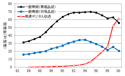このような施策により、専用線数は2000年代に入るまで着実に増加していった。