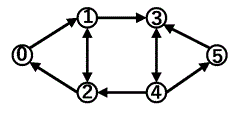 右図を次の経路表で表現します。始点から終点への直接の経路があれば、経路表[始点,終点]=1、なければ 0 とします。