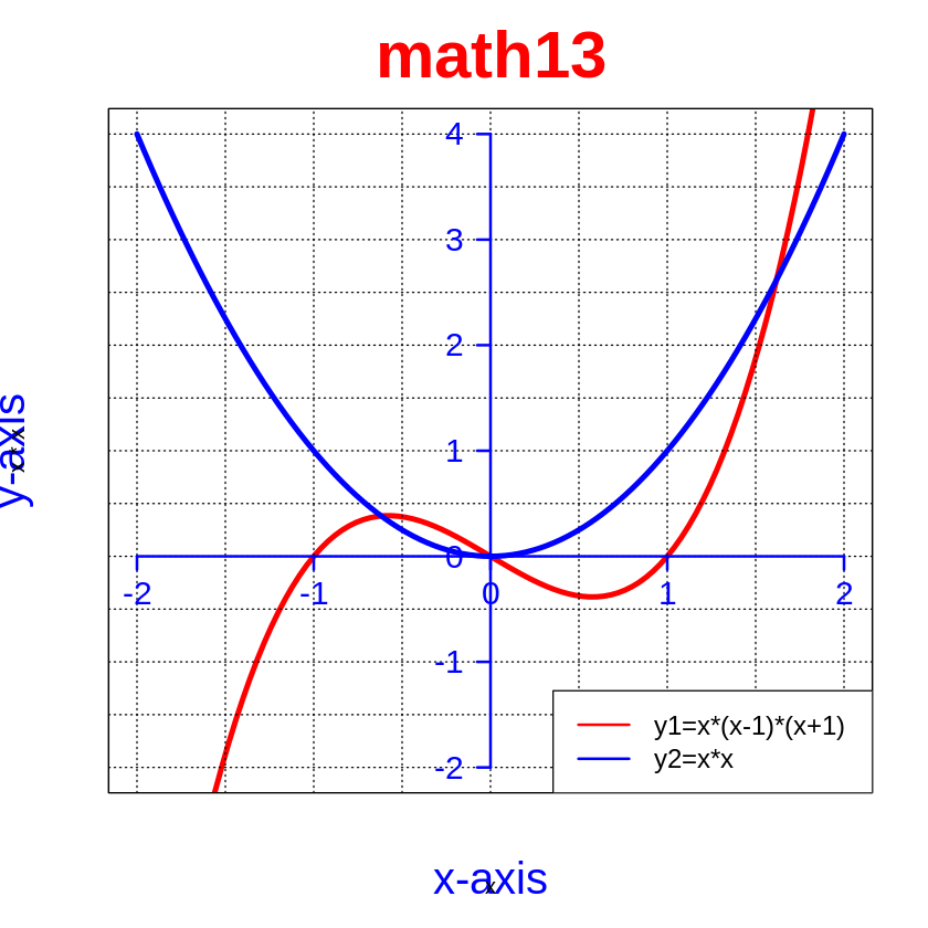 legend=c("y1=x*(x-1)*(x+1)", "y2=x*x"),