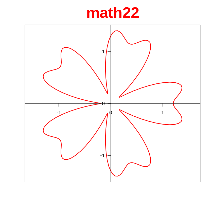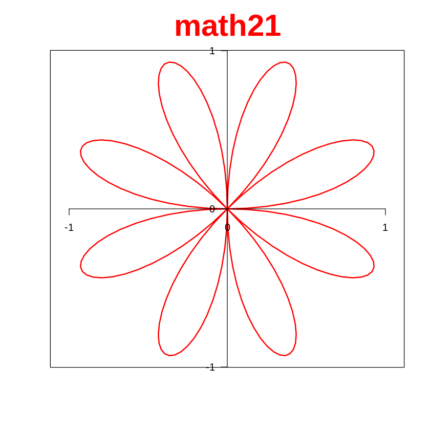 t <- seq(0, 2*pi, 0.01*pi) # 0~2πを 0.01π刻み