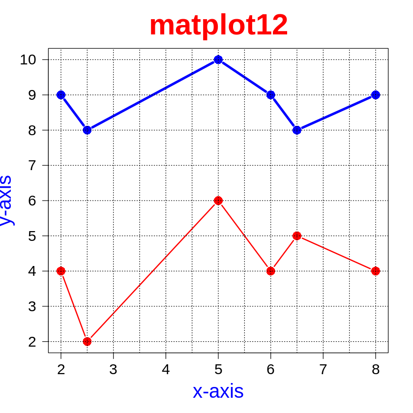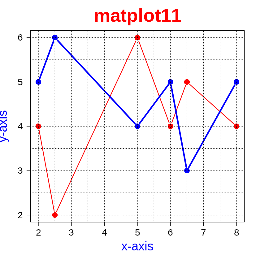 matplot(x, y) # 点はデフォルト指定(1,2、…になる)