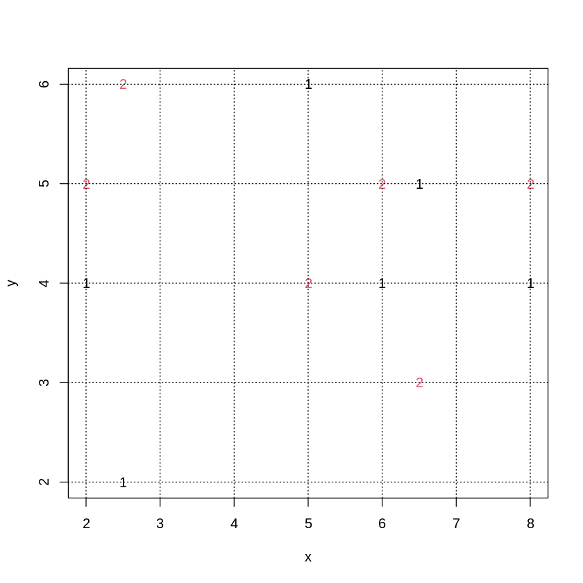 c1 = c(2, 2.5, 5, 6, 6.5, 8), # 1 2 4 5