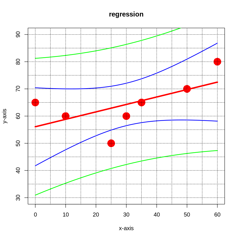 interval = 'confidence', level = 0.95) # 新X点に対応する信頼区間95%限界点