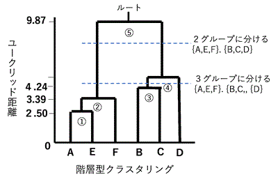 クラスタリングは、目的は同じですが結果表示の違いにより、非構造型クラスタリング(下左図)と構造型クラスタリング(下右図)に分かれます。