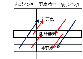 | 要素 | 配列 | 前ポインタ | 後ポインタ |
