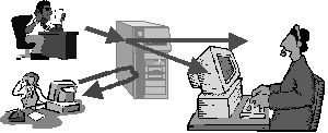 顧客の電話番号が登録されているならば,電話がかかってきたときに,顧客の電話番号がわかりますから,電話を取るまでに今までの購入履歴や保守履歴も含む顧客情報が担当者のパソコン画面に表示されます。顧客が商品名を告げたら直ちにその商品情報やそれの注意事項も表示されます。これを参照することにより,初心者でもベテランと同じ応答ができるようになります。このようなシステムでは電話とコンピュータを組合わせた技術を用いますが,それをCTI(Computer Telephony Integration)といいます。 |