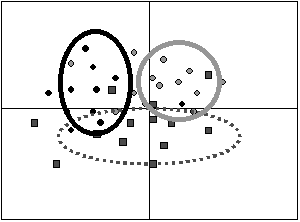 グループ分け,似たもの集めとでもいうべき手法です。例えば,顧客をいくつかの層に分類するとき,通常では性別,年齢別,購入金額別というように人間が事前に切り口を決めて分類しますが,クラスタ分析では,それらを事前に与えるのではなく,統計的にそれらの間にどのような関係があるかを調べて,似たようなものを同じグループにまとめるのです。それによって20代の女性と40代の男性で1回に購入する金額が高いグループとか40代の女性で1回の購買額は少なく購買頻度が多いグループなどに区分します。これによって,顧客を層別してそれぞれに適したマーケティングをすることができます。 決定木あるDMを発送して,来店した人・来店しなかった人に区分したとき,来店した人はどのような属性(年齢,性別,所得,家族数,職業など)を持つかを求める方法です。最も効率的な絞り込みを自動的に行って、「決定木」という見やすい形で表示します。 アソシエーション何と何が一緒に発生するかを発見する手法です。例えば,スーパーで一人あたりの売上を増大させるには,「ついで買い」をさせることが効果的である。商品Aを買う人は商品Bも買うことが多いことがわかれば,そのような併買商品を近くに陳列すると,顧客も便利ですし,ついで買いも高まります。そのような分析をバスケット分析といいます。このとき,商品が非常に多いので「A商品と併買する商品は?」「B商品では?」というように事前に商品を決めて分析するのは困難です。アソシエーションは,それを事前指定せずに併買関係を求める方法です。☆ 有名な例として,「紙オムツやベビーミルクとビールの併売」があります。米国では奥さんに頼まれてダンナが車でスーパーに買いに行くのが通常ですが,そのときに赤ちゃんのものだけでなく自分用にビールをケースごと買って行くのだと説明されています。でもこれは「伝説」でしょう。→参照:@IT情報マネジメント用語事典「おむつとビール」( http://www.atmarkit.co.jp/aig/04biz/diapersandbeer.html) |