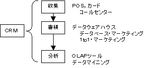 マーケティング,顧客志向マーケティング,多品種少量生産,機会損失,不良在庫,顧客差別化,顧客情報,DM,RFM分析,POS,ポイントカード,クレジットカード,CRM,個客,データベース・マーケティング,ワン・ツー・ワン・マーケティング,データウェアハウス,OLAP,多次元データベース,スライシング,ダイシング,ドリリング,OLAPツール,データマイニング,クラスタ分析,アソシエーション,バスケット分析,決定木,コールセンター,CTI,アウトソーシング
