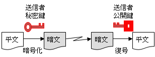ということもあります。それを用いれば「送信者の署名鍵で暗号化した暗号文を、送信者の検証鍵で復号して平文にする」と表現できます。