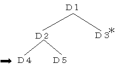 あるファイルシステムの一部が図のようなディレクトリ構造であるとき,*印のディレクトリ(カレントディレクトリ)D3から矢印が示すディレクトリD4の配下のファイルaを指定するものはどれか。ここで,ファイルの指定は,次の方法によるものとする。