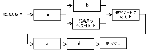 ジェームス.L.ヘスケットによるサービスプロフィットチェーンを示した図のa~dに入るもののうち,cに該当するものはどれか。