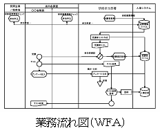 - DFDは抽象的な機能をしたものなので,どの部門が行うのか,情報はどのような形式で伝達されるのかという具体的な記述には向いていません。それを記述したのがWFAです。