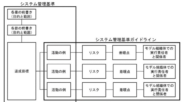 「基準」は、システム監査の効率的・効果的遂行を可能にするための判断尺度として策定されたものである。「ガイドライン」は、「基準」を利用するにあたって、より具体的な ITガバナンス及びITマネジメントに関する着眼点等を例示することにより、システム監査を実践する際の参考とすることを目的としている。