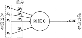 入力層のニューロンでは信号処理を行わず、受け取った入力信号をそのまま中間層のニューロンへ伝えるとする。中間層と出力層は上式により入力→出力の処理をして、出力信号を他のニューロンへ伝える。ここでは、中間層を一層としたが、多層にすることができる。人間の脳はもっと複雑なメカニズムになっているが、5層~10層程度で近似できるといわれている。