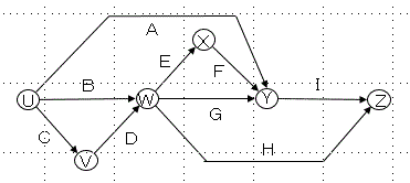 ここでは、わかりやすくするため、アローをA~I、ノードをu~Zと命名しましたが、任意の文字列で構いません。