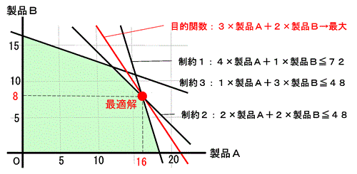 制約3: 1*製品A + 3*製品B ≦ 48