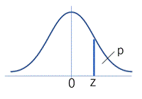 z = (x - μ) / σ と変換することにより、標準正規分布での z → p になります。