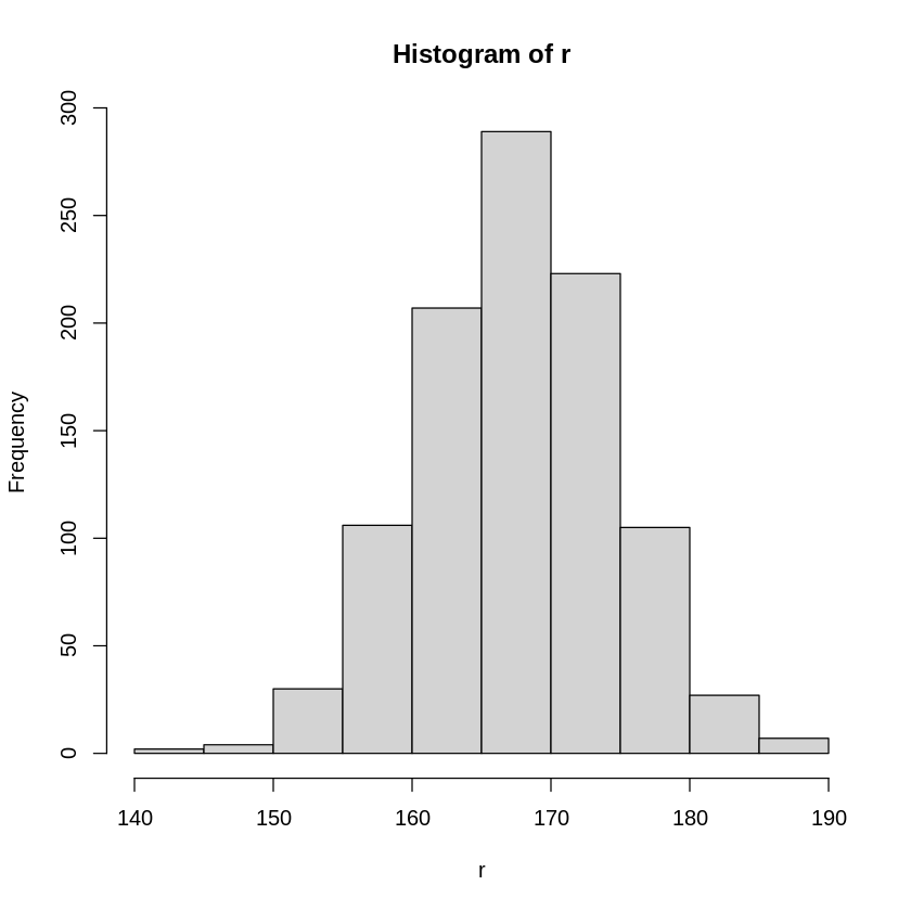 r <- rnorm(1000, mean=167.6, sd=7.0)