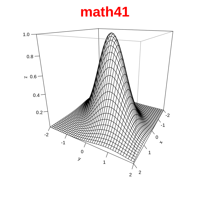 z <- outer(x, y, fxy) # outer 外積関数。 (x,y) の各点で fxy を計算したときの行列になる