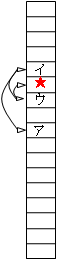 右図でのア→イ→ウ→・・・のように探索範囲を半分にしながら探索していく間に、3でx=[i] となるか、2で amin>amax となり、処理が終わります。