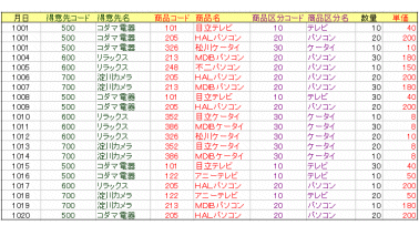 - 上の画面で「売上表」を開くと,次の画面になり,売上表全体が表示されます。それを確認したら,「売上表」の右上の「×」をクリックして閉じておきます。