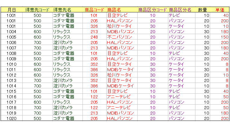 以降,「売上」を中心にして説明します(「授業」は「SELECT文の概要」での演習で用います)。