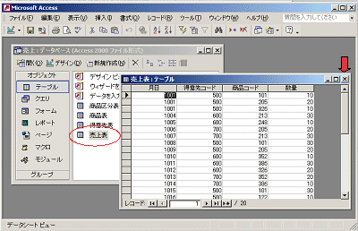 売上.mdb:「売上」データベース, 売上.xls:そのExcelデータ