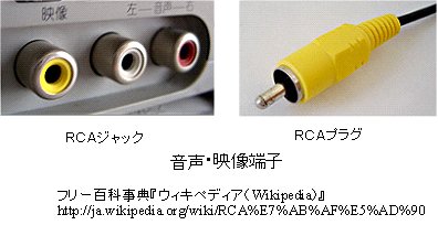 話声入力は,マイクから音声端子を通して入力されます。端子は,ピン端子,ピンプラグ・ジャックともいいます。パソコン側がジャック,コード側がプラグです。一般に映像端子と音声端子を共通にしています。