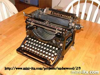 QWERTY配列は,必ずしも打ちやすい配列ではありません。そもそもタイプライタは,右図(UNDERWOOD,http://www.mini-itx.com/projects/underwood/より)のように鍵盤でハンマーを叩いて印字する仕組みでした。それで,ハンマーが絡まないように,打鍵速度を下げる必要があったのです。パソコンではその必要はないのですが,いったん「業界標準」となった後は変更が困難であり,現在でもこの配列が続いているのです(これは事実に反する俗説だとの指摘もあります)。