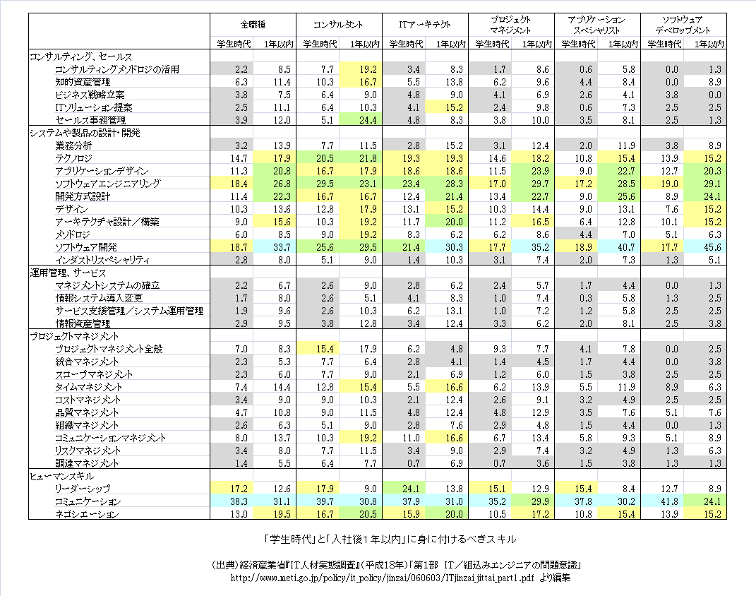 上記の事項は、情報学部と情報サービス業の関係、すなわちITの提供者側、ベンダ技術者に限定されています。