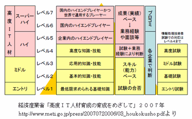 『高度IT人材の育成をめざして』2007年により客観的な人材評価が必要性が提言され、これに基づいて経済産業省とIPA(情報処理推進機構)が連携して2008年に『共通キャリア・スキルフレームワーク第一版』、2012年に『第一版・増補版』が公開されました。