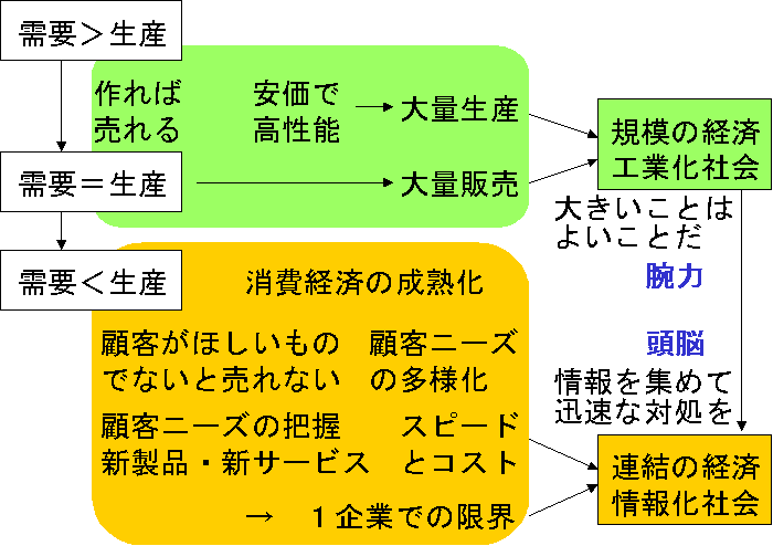 それほどではなくても,需要に対して供給が追いつかない状況では,企業戦略の基本は,よい製品を低価格で提供することであり,そのためには大量生産をすることでした。