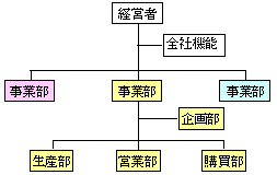 - 短所:組織上,業務上で同じような部門や職能が重複して設けられるという無駄が生じ,二重投資,三重投資が行われる傾向がある。