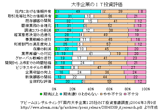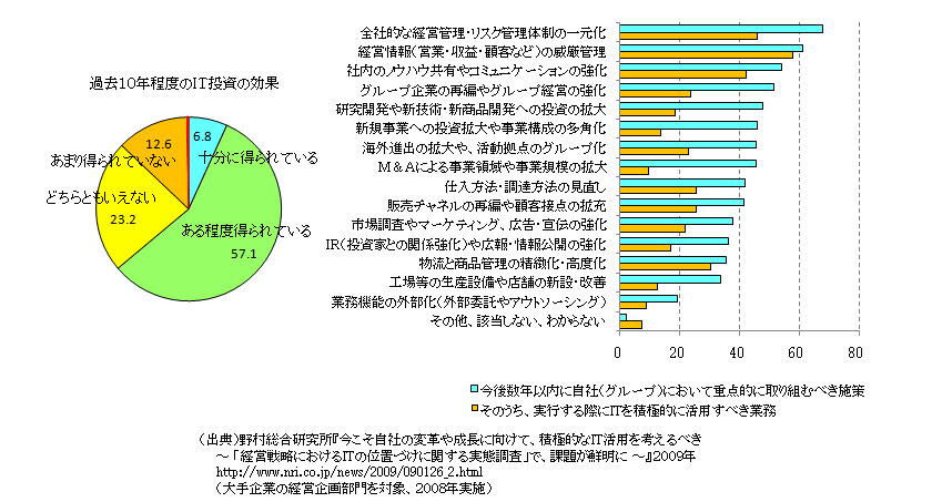 大企業を対象にした調査では、経営者や企画部門の多くが、IT投資に関して「ある程度効果がある」と評価しています。
