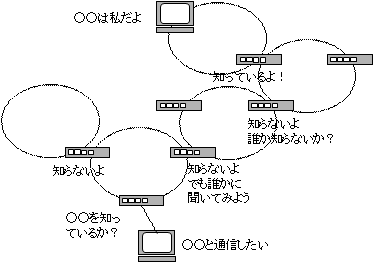 ルータは、自分が接続しているネットワークのIPアドレスのリスト。ルータAが宛先のIPアドレスを知らないときは、ネットワークに接続している他のルータBに聞きます。ルータBも知らなければ、さらにルータBに接続しているルータCに聞きます。このようにバケツリレーをしているうちに、いつかはそのIPアドレスを知っているルータにたどりつきます。