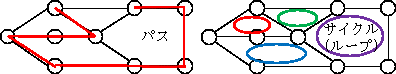 - エッジを連続した1本の線でつないだ線をパス(経路)、ループ状になる線をループといいます。