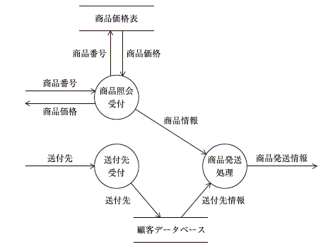 ア 業務のデータの流れと処理の関係を記述したDFDである。