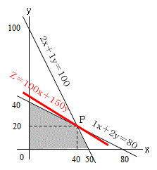製品X及びYを生産するために2種類の原料A,Bが必要である。製品1個の生産に必要となる原料の量と調達可能量は表に示すとおりである。製品XとYの1個当たりの販売利益が,それぞれ100円,150円であるとき,最大利益は何円か。