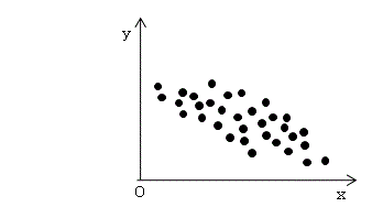 図は,製品の製造上の要因の値xと品質特性の値yとの関係をプロットしたものである。この図から読み取れることはどれか。