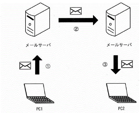 PC1のメールクライアントからPC2のメールクライアントの利用者宛ての電子メールを送信するとき,①~③で使われているプロトコルの組合せとして,適切なものはどれか。
