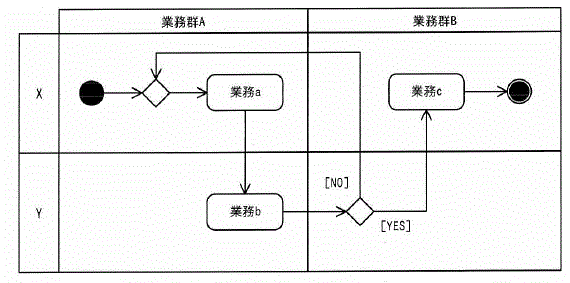 業務プロセスを,例示するUMLのアクティビティ図を使ってモデリングしたとき,表現できるものはどれか。