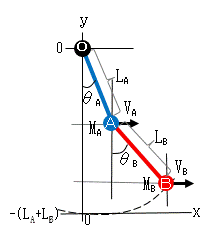= (1/2)(MA+MB)*(LA*dθA)2 + (1/2)MB*(LB*dθB)2 + MB*LAdθA*LBdθB*(cos(θA-θB)