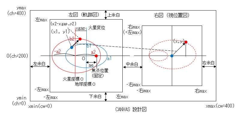 プログラムでは、左図と右図を同一CANVASにするため、CANVASの設計が複雑になります。図はその設計図です。