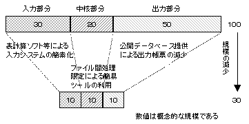情報検索系システムを普及すれば,個々の帳票を提供するのではなく,その基になるデータを公開データベースとして提供するだけでよいので,基幹業務系システム全体の規模を小さくできる。また,データ入力の部分も,ある程度はユーザの設計に任せることができる。