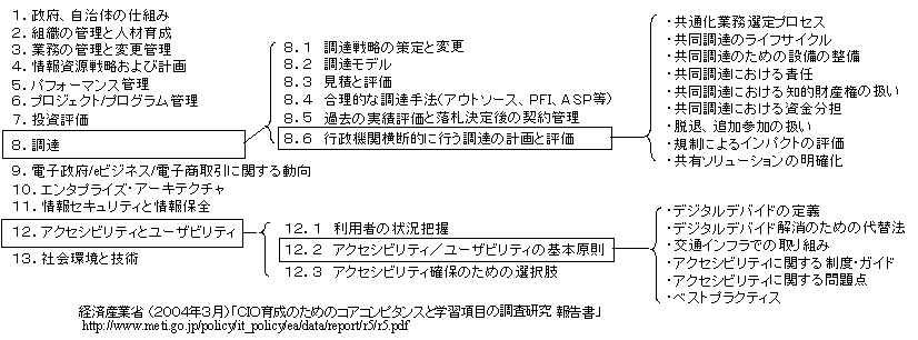 経済産業省のものでは、CIOが持つべき経験と知識について,13の大項目,82の中項目,589の小項目を列挙しています。そして,それぞれの項目について,一定のレベルであることが目標とされています。