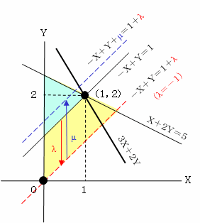 しかしこれでは、X=0、Y=0のとき、λ=-1になってしまいます。それで、さらに変数μを導入して、
