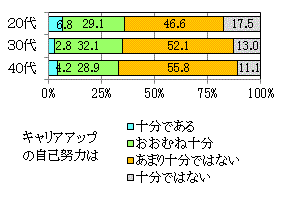 キャリアアップを望んでいるのに、自主的な努力をしている人の割合は低い。