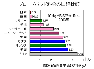 e-Japan開始時には、通信回線料金が高いことが障壁だとされていましたが、2003年にはブロードバンドは世界で最も廉価な料金になりました。