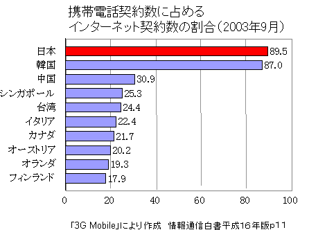 日本での特徴は、携帯電話でのインターネット利用(電子メール)が多いことである。携帯電話の利用頻度では電子メールが音声電話を超えており、インターネット人口の多くはパソコンと携帯電話の両方を利用している。