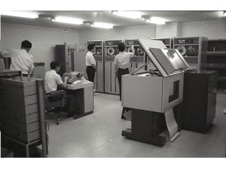 当時のコンピュータは、ガラス張りの室に鎮座し、白衣を着用していた操作者は神官のように見えた。さすがに白帽はつけていなかったが、スリッパに履き替えることはかなり後まで続いた。